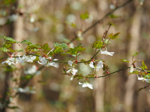 大雨による洪水痕があったので、湿地地区も調べておくことにしました。 湿地地区では、地区内に水を引き入れている水路の途中に、大きな穴が 2つ開いていたので、これを補修しました。 谷戸に面した樹林のコブシ、ヤマザクラ、キブシ、モミジイチゴなどが開花していました。