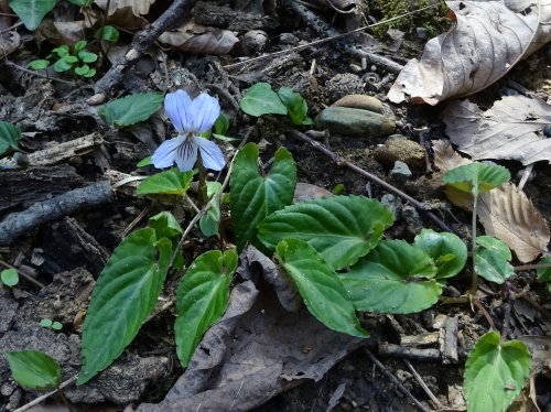 雑木林の林縁に、ナガバノスミレサイシンが咲いていました。生田緑地の雑木林では、普通に見られるスミレです。