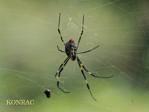 ジョロウグモが草地上空に網を張っていました。