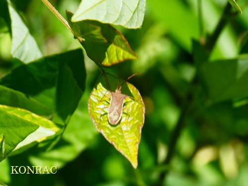 柿の木の下に育っていたアオキ、シロダモ、アズマネザサなどを刈ったら、ウラシマソウが現れました。 草地の上をクロハネシロヒゲナガ(オス)がヒラヒラと飛んでいました。 ハリカメムシが葉上にいました。