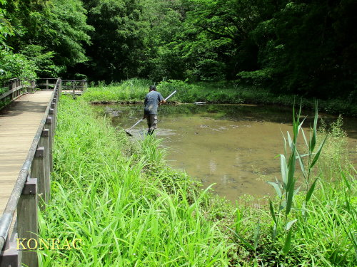 上の田圃下草地のカナムグラ抜き 日時:2022/5/26(木) 10:00〜12:00 曇時々晴 場所 生田緑地 上の田圃地区 参加者 鈴木潤三、田村成美、上路ナオ子 上の田圃下草地には、ノカンゾウ、ツリフネソウ、オオミゾソバなどが育ち始めています。 そこに、カナムグラも育ってきましたが、まだ簡単に根こそぎ引き抜くことができますので、カナムグラ抜きを行いました。
