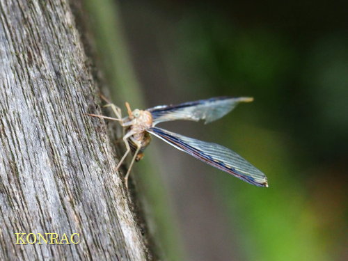 一昨日の里山の自然学校の時に、木道上に広がった枝葉で見つけた昆虫を、ゆっくり調べたいと思って持ち帰りましたが、 これはカメムシ目ハネナガウンカ科のマエグロハネナガウンカだと分かりました。 ウンカの仲間は、イネを吸汁したり、ウイルスを媒介したりする種がいたり、稲作の立場からは害虫扱いをすることになります。 ハネナガウンカの仲間の生態については分かりませんが、イネを吸汁することがあったとしても、私たちの田圃は「生きもののための田圃」を目標にしていますので、害虫扱いはしません。 これを採集した場所で放すために持って来ましたので、放しました。