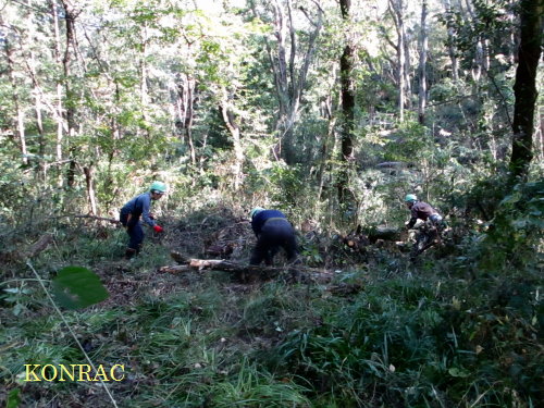 この日は、ハンノキ林の落枝や倒木の片付けの活動の続きを行いました。 ハンノキ林東地区(A07-12) の下端部から倒れた枯れコナラとヤマザクラが大径木のため、ノコギリでの切断に時間がかかっています。 今回の活動によって、もう少しで幹だけになりそうですので、幹だけになったら、大きなまま放置して、水流保全の活動に移ってもいいだろうと考えるようになりました。 倒れた時に幹の下側になった枝は湿地の地面に潜っています。 ハンノキ林の中央部については、やるべきことが見えてきました。 ハンノキ林の北側半分にも、落枝や倒木はあります。 ハンノキ林東支谷戸(A07-07) は、谷壁斜面のコナラがナラ枯れを起こしていますので、危険です。 水辺の状態とナラ枯れコナラについて調べて、活動方法を考えたいと思います。