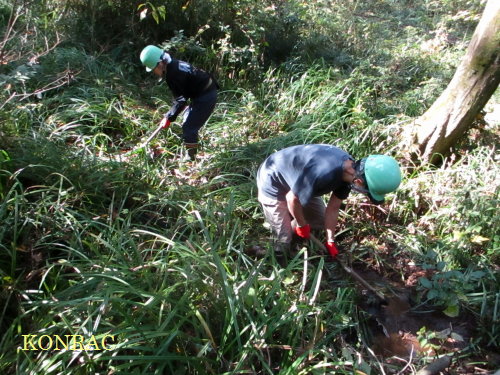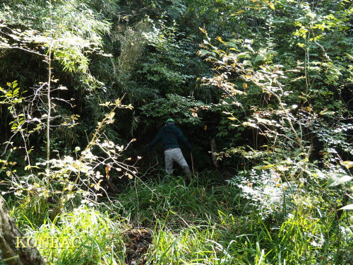 ハンノキ林の水辺保全、落枝の片付けなど 日時:2022/11/3(木) 10:00〜12:00 場所 生田緑地 ハンノキ林(A07-02) 参加者 岩田臣生、岩田芳美、井口 実、上路ナオ子、鈴木潤三、田村成美 夏から秋にかけての生田緑地の雑木林は、ナラ枯れによる大量の落枝がありました。 ハンノキ林でも、昨夏に枯れ始めた周囲のコナラ大径木が次々に枝を落としているほか、一昨年に枯れ始めたコナラの大木では、根返りして、ハンノキ林に倒れたものもありました。 今秋は、それら太い落枝の片付けにも追われましたが、この日は、本来の活動である水辺保全を行うことにしました。 ハンノキ林の水辺保全は、落枝ダムなどを使って、水溜まりをつくります。 水流を流れ易くするのではなく、流れ難くして、周辺を湿地にすることを考えています。 また、水溜まりをつくっておけば、渇水期でも、水が残っている可能性があるからです。 ハンノキ林の中央部、木道が集まっているロータリー?に荷物を置いて活動することにしました。