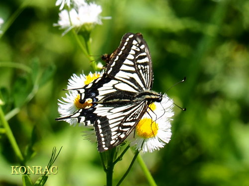 アゲハチョウがハルジオンで吸蜜していました。 ハルジオンは外来種ながら、古くからあった種であり、吸蜜源としては役立っているので、特別な駆除活動は行っていません。