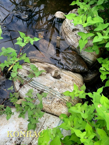 谷戸の水辺点検、カナムグラ刈り、アズマネザサ刈りなど 日時:2023/7/20(木) 9:10〜11:50 曇時々晴、30℃ 場所 生田緑地 北の谷戸の水辺 参加者 上路ナオ子、鈴木潤三 (上の田圃の導水路) 上の田圃の導水路を点検しました。