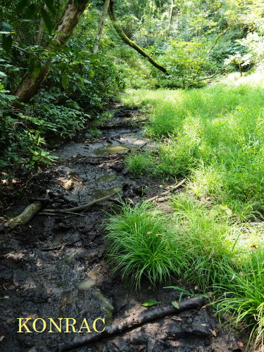 谷戸の田圃の水漏れ補修など 日時:2023/7/27(木) 9:00〜11:00 晴 場所 生田緑地 上の田圃など、谷戸の水辺 参加者 井口 実、伊澤高行、鈴木潤三(10:00〜) 生田緑地は長い間、降雨が無かったため、湧水量が極めて少なくなっています。 あちこちで水涸れを起こしていることが、容易に想像できます。 一昨日、7/25(火)は、上の田圃の下の段の水が涸れていたので、手入れを行いました。 と言っても、流入する水が非常に少ないため、水涸れが解消できたわけではありませんでした。 ですから、この日は確実に、水涸れを解消しなければと考えてはいましたが、朝の整備事務所裏には、井口さん、伊澤さんの2名が来てくれましたので、上の田圃のことは任せてしまうことにしました。 上の田圃の下の段は、2006年に再生した田圃ですが、2004年、2005年に再生した田圃と異なり、元の田圃の形状は破壊されていたので、田圃をつくってから暫くは、 粘土質でない部分や、モグラ穴などからの漏水が頻繁に起こっていました。 私たちの活動は、取り返しのつく範囲で、やって、みて、考えるを基本にしています。 最近入団した団員は、自分で観察して、自分で考えて、活動してほしいと思います。 また、活動歴11年の団員は、その経験も活かして、活動してくれればいいと思いました。 湧水の流量がここまで少ないと、水漏れ箇所を全て止めることができたとしても、水が溜まるまでには数日かかると思います。 皆さんが活動を終えて、引き上げた後の田圃の状態は、一昨日の状態と余り変わりなく、水涸れが解消されたとは言えない状態でした。 それでも、田圃の中にいたホトケドジョウは、とっくに低水温の上流に移動していただろうし、田圃は中干したような状態ですから、稲には問題無いと思いました。 城山下谷戸生物保護区の湿地保全 日時:2023/7/27(木) 9:00〜11:30 晴 場所 生田緑地 城山下谷戸生物保護区の湿地の手入れ 参加者 岩田臣生 城山下谷戸生物保護区は、2004年度に川崎市公園緑地課が主催した生田緑地整備基本計画ワークショップにおいて提案した案が合議され、行政計画とされたものです。 後から知ったことですが、当時、川崎市においては、当該地区に園路を整備する計画が立案中だったらしいのです。 ただ、周囲の谷壁斜面は急峻なので、園路整備はコストがかかるだけでなく、広い範囲の雑木林を伐開して園路を通すだけにしかならないだろうと思われます。 多分、それもあって、トップの英断で生物保護区として位置づけてくれたものと思います。 経緯は兎も角として、この谷戸の湿地には、シラコスゲが繁茂し、ホタルの権威である故大場博士が驚かれたほどの密度でスジグロボタルが棲息していました。 そして、2008年から始めた環境省モニタリングサイト1000里地調査(一般サイト生田緑地)の中大型哺乳類調査の定点カメラに、地球規模の絶滅危惧種とされているミゾゴイが撮影されました。 更に、近年、オオタカが営巣するようになりました。 谷戸を生物保護区とすることは、公園としての直接的利用を目指さないということですが、野生生物の棲息状況が分かってくると、生田緑地の生物多様性にとって、重要な地区だったことが分ります。 この谷戸の湿地は、保全しなければならない重要な場所だと考えていますので、湿地の状態を点検することにしました。 整備事務所裏から芝生広場に降りる尾根路は、ナラ枯れコナラの落枝や倒木の危険に配慮して通行止めになっています。 夏期なので、来園者が通らないことによって、園路両側からアズマネザサが侵出して、園路は草むら状態になっていました。 そして、もう終わったと思っていたヤマユリが1本咲いていました。 また、ヒヨドリバナが数本咲いていました。