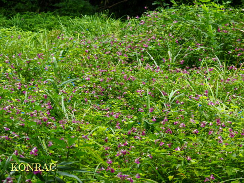 上の田圃の上の草地のツリフネソウは見頃を迎えています。