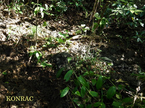 ハンノキ林(A07-07)のアズマネザサ刈りや水辺づくりは、2019/3/12(火)に行ってから行っていませんでした。 アズマネザサは、太さ 1cm、高さ 3mのヤブ状態でした。 保全しておきたかった貴重種の群落については、そこに侵入していたアズマネザサを刈り、落ちていた倒木を撤去しました。 群落の規模に縮小している様子はなく、元気で、種子をつけている株もありました。 樹陰を好む植物ですが、周囲の樹木やアズマネザサは繁り過ぎないように刈りました。 更に周辺のアズマネザサ刈りを続けて、かつて掘りかけていた水溜まりの場所を見つけ出しました。 地面の凹み部に、僅かな水があることを確認しました。 そこで、その周囲のアズマネザサを刈り、昆虫の出入りが容易な状態にすると共に、水を確認できた辺りを少し掘りました。 この辺りの土質は、粘土と砂が混ざったような状態で重く、腰に負担がかかり、穴と呼べるような状態にすることはできませんでした。