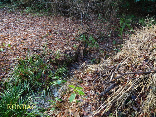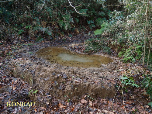 城山下谷戸側の、湿地づくりのために掘った場所に、水は溜まっていませんでした。 城山下谷戸の水流は、この区域に入る前に水漏れして、この区域には殆んど流れていませんでした。