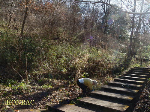 萌芽更新地区下の園路沿いのアズマネザサ刈りも進めました。 毎回、大した作業量ではないと思いながら、かなりの時間がかかってしまいます。 今回は、園路沿いだけでしたが、萌芽更新地区の斜面下方のアズマネザサ刈りも残っています。 こうした冬期のアズマネザサ刈りは、楽しい活動ではありませんが、春の草たちの開花を楽しむためには必要な活動です。