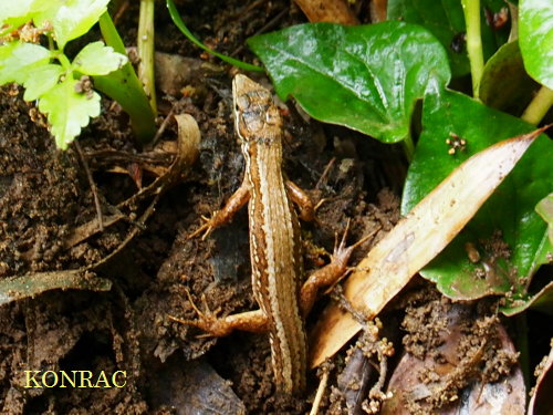 木道脇に、尾を失ったニホンカナヘビがいました。