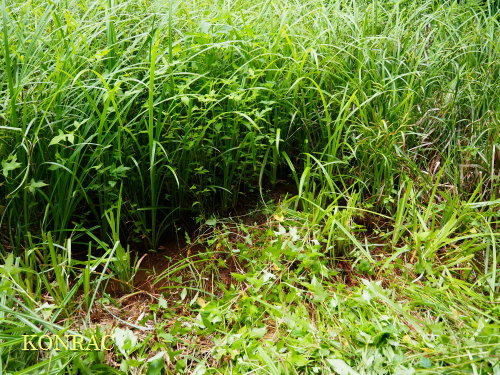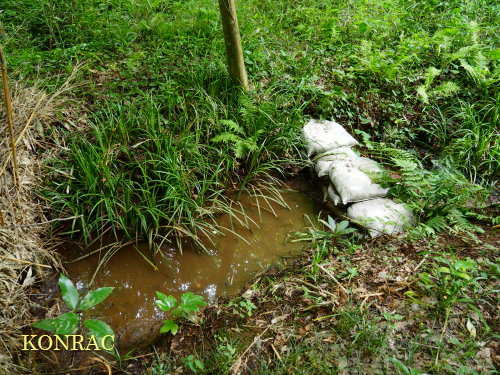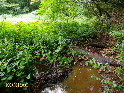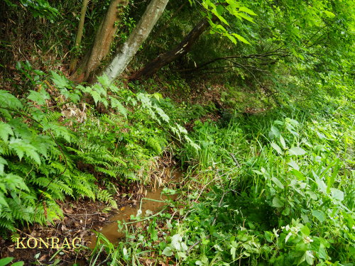 ●上の田圃 湧水の流量が多いので、田圃の水の状態は良好でした。 でも、田圃下草地の水路に水がありませんでした。 水路沿いに草刈りを行って、水路に水を流そうと試みましたが、穴だらけで、直ぐに水は消えてしまいました。 少し範囲を広げて、草地の状態を調べたら、なんと、谷戸の右岸水流が途中で涸れていました。 田圃下から城山下谷戸合流部までの間が、完全に水涸れしていました。 これは一大事です。 まず、この水流を回復させなければなりません。 季節的に大きな問題を引き起こさない程度の作業を行って、谷戸右岸の城山下谷戸合流部までの水流を復活させました。
