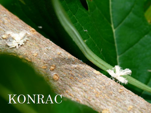 ●谷戸の田圃地区 夏期の里山倶楽部のための下調べを終えたので、上の田圃地区に戻りました。 鈴木、田村が、田圃下草地のカナムグラ抜きをしていました。 梅ノ木広場近くのベンチで一休みしてから、チダケサシの群落の中に生えていたアズマネザサを刈り、この辺りで大きくなっていたヤマグワ、ヒメコウゾなどを除伐しました。 その繁みの中には、ハゴロモの仲間の幼虫でしょうか、綿のようなフワフワした感じで、枝を移動する生きものが多数いました。