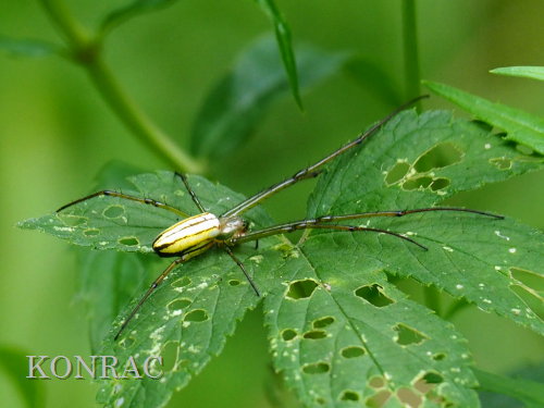 オオシロカネグモがカナムグラの葉上にいました。