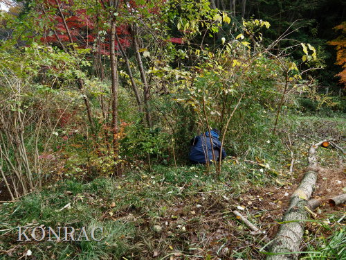 それから、一昨日伐採して仮置きしておいたハンノキの材を、太いものから順番に、ハンノキの根元に積んでいきました。
