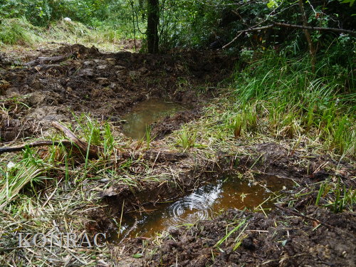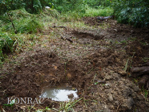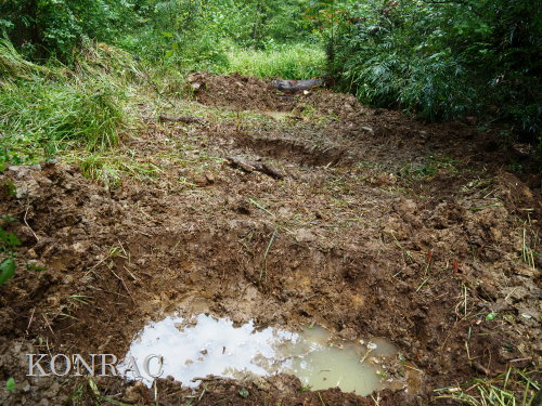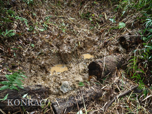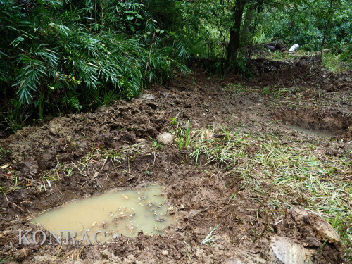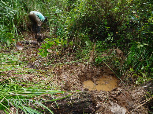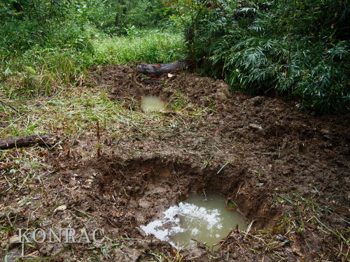 途中、水が染み出している所がありましたので、そこに小さな穴を掘ってみました。