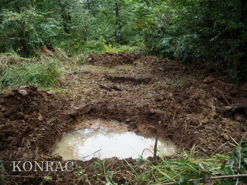 里山倶楽部で掘った水溜まり穴には、更に水が増えていました。