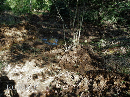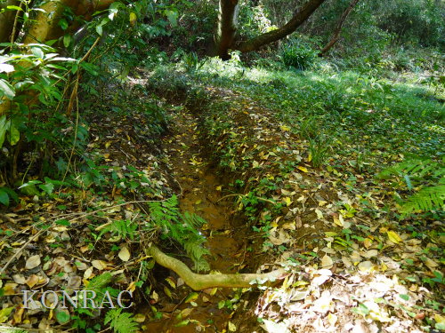 水路の途中で水が消えて、水溜まりに水はありませんでした。