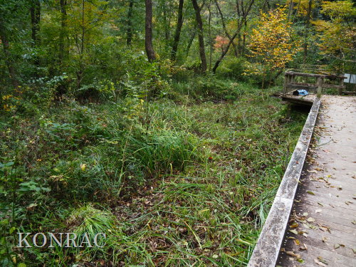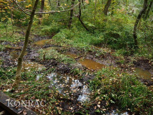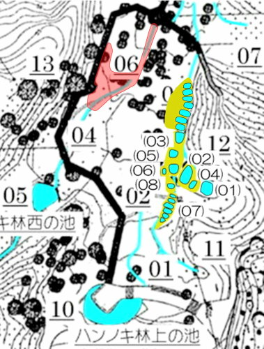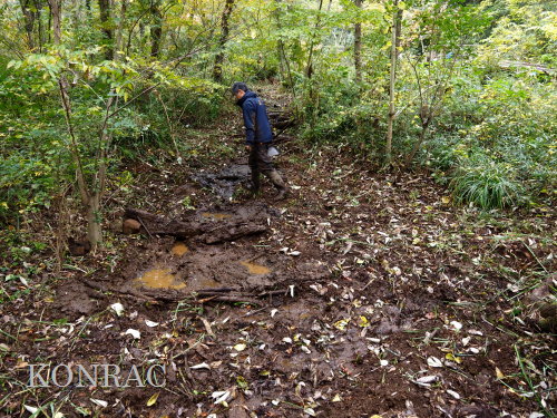 ハンノキ林西側地区の水辺保全 日 時)11月13日(木) 9:00〜12:00 曇 場 所)生田緑地 ハンノキ林(A07-06) 活動者)岩田臣生、田村成美 一昨日、11/11(火)は、ハンノキ林西側地区、西の池から流れ始める水流の泥上げと水辺の樹木の間伐、 林床植物の草刈りを行いました。 今日は、その下流域の水辺、特に、水流と木道の間の植物の草刈りと水流の泥上げを行いました。 今までは、水辺保全と植生管理は別の日に行っていましたが、今年は、水流の水辺保全と水辺の植生管理を同時に行うことにしたのです。