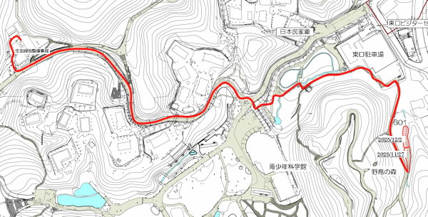 野鳥の森の水流の水辺保全 日 時)12月2日(火) 9:00〜12:00 曇 場 所)生田緑地 野鳥の森の水辺(B01) 活動者)岩田臣生、伊澤高行 野鳥の森の水流の保全活動は、14年前、2011/11/29(火)に始めた活動で、 数年に1回、水流に溜まった土砂を掘り上げています。 今年は、2025/11/27(木)に行いましたが全域の泥上げを済ますことができませんでしたので、 今回、その続きを行いました。
