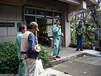 場所 生田緑地ピクニック広場南側斜面( 集合は北部公園事務所前 ) 講師 倉本 宣(明治大学農学部教授、生田緑地植生管理協議会会長) 参加 井口実、尾形達也、久保田浩二、佐藤利奈、篠 清治、白澤光代、雛倉正人、前田 宏、美馬咲子、 吉澤トヨ(10名) 北部公園事務所 井上久子、鈴木修司、堀江 洋 (3名) 事務局 岩田芳美、岩田臣生 合計16名 第2回市民部会は、ピクニック広場南側斜面に生えているアオキ、シュロ、ヤツデについて、 その位置、樹高、根元直径、葉張り、樹齢などを調べて、本来の雑木林には無かった、これらの樹木について考えることにした。 まず、生田緑地の西口から東口に至る幹線路のピクニック広場に面した肩の部分3ヶ所からロープを最大傾斜方向に垂らした。 ロープの間隔は10m。このロープには予め2m間隔で印をつけておいた。 次に、各ロープの4m毎に、水平方向左右2mの幅で白いスズランテープを張り、ペグで固定した。 このスズランテープを目印として4m四方の区画をピクニック広場まで帯状につくった。 3本の帯状区を西側からA、B、Cと名付けた。各帯状区は、各々7、7、8区画あった。 斜面は上端から3区画ぐらいまでが急勾配であった。