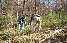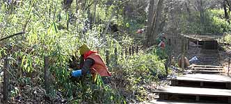 日時 2月17日(日)10:00〜12:00 場所 生田緑地萌芽更新地区(A06) 参加 井口実・かおる(生田緑地の雑木林を育てる会)、白澤光代(同)、久保田浩二(同)、渡辺武市(同)、土屋邦雄(同)、小野実(同)、 喜多大巳(同)、中島光雄(同) 神山歩未(里山の自然学校) 堀江洋(北部公園事務所)、鈴木修司(同左)、山口泰民(同左) 市民部会事務局/岩田芳美・臣生(かわさき自然調査団水田ビオトープ班) 参加者15人 萌芽更新地区(A06)の笹刈りと落葉かきを生田緑地の雑木林を育てる会の協力を得て実施しました。 第11回市民部会にも、里山の自然学校の子ども3人が参加しましたが、この日は1人の参加がありました。 中学1年生が大人と一緒に笹刈りなどのボランティア作業をしました。 市民部会では、ごく普通の人の参加を期待しています。楽しい半日を生田緑地で一緒に過ごしてみませんか。
