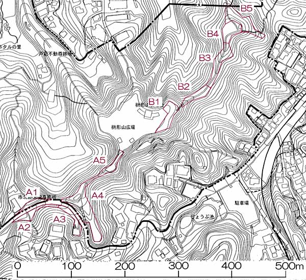 B2、B3地区は枡形山と飯室山を結ぶ吊り尾根の部分である。