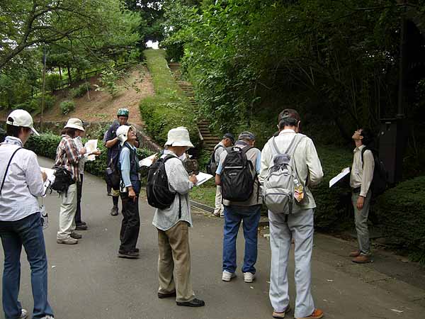 日時 2009年7月12日(日)10:00〜13:00 曇のち晴 場所 生田緑地 講師 吉田多美枝(かわさき自然調査団植物班班長) 参加 浅井トモ子、小沢千恵子、勝田佳代子(麻生区市民健康の森)、川床邦夫、広瀬益朗、渡辺恵司 かわさき自然調査団植物班/佐藤登喜子、吉留憲子、佐崎藤子、前田 宏、村井正蔵 かわさき自然調査団水田ビオトープ班/尾形達也、佐藤利奈、雛倉正人 北部公園事務所/堀江 洋 事務局/岩田臣生 参加者17人 自己紹介をしてから活動開始。