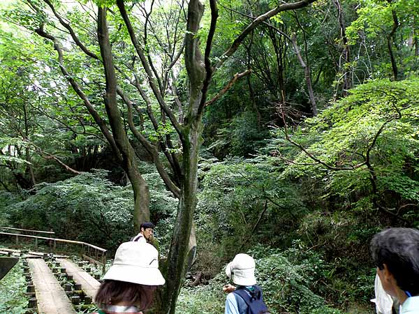 《奥の池》 生田緑地の雑木林は遷移が進んでいます。この時期には余り目立ちませんが常緑樹林化が進んでいると思われる所が随所に見られます。 アズマネザサが枯れ始め、下草が無くなっているところもあります。 市民部会では、大勢としては明るい雑木林であってほしいと考えて、そのためには私たちが何をすればいいのかを皆で考えて、植生管理を実行していこうとしています。 これからも是非、市民部会の活動に参加して戴きたいと思います。 最後になりましたが、吉田先生から一言戴きたいと思います。(岩田) 凄い勢いで雑木林を駆け抜けてきました。生田緑地の3分の1くらいを歩きました。 1日で樹木を理解して雑木林でどうするこうするとは言えませんが、見てきた雑木林にはいろいろなものがあって、 いろいろな活動をしているという一端は分かって戴けたと思います。 今日は時間が限られていましたので十分な説明ができなかったかも知れません。 普段、第一日曜日には、植物班がガイドをする生田緑地観察会が開催されています。 それに度々参加して戴ければ、更に新しいことを知って戴けると思います。 最後に集合写真を撮って解散しました。