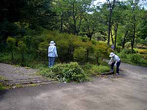 活動後、自然探勝路沿いに植栽されたアジサイの管理について、根元のササ刈り、アジサイの剪定など、植生管理計画として規定することなどを話し合いました。 |