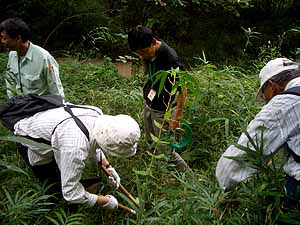 樹林に入って観察調査を行い、名札や印付けを始めました。
