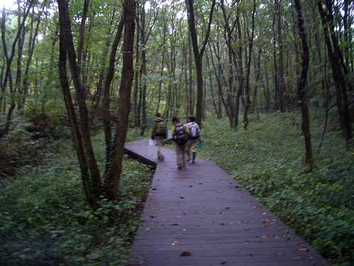 非常に良い感じの林間の木道が整備されている。柵は無い。