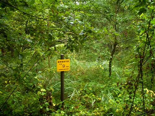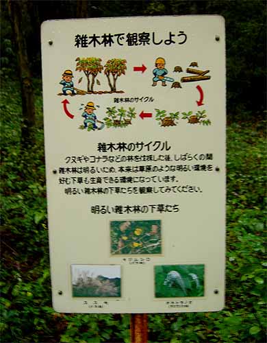 ここは初めから皆伐更新を見せるという考え方をしているので、こういう札が立っている。
