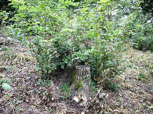 2本の株立ち、萌芽多数、根元の萌芽あり |