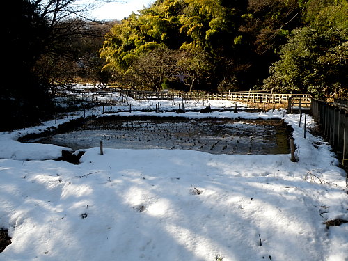 生田緑地は、14日に降った雪が、まだ融けきれていませんでした。