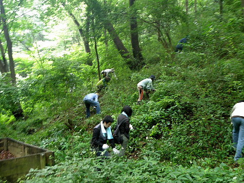 生田緑地整備事務所前に集合して、自己紹介を済ませてから、萌芽更新地区に向かいました。