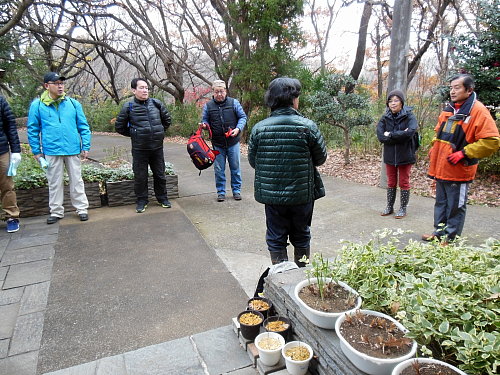 集合は生田緑地整備事務所前でしたが、いつ降り出すか分からない空模様でしたので、慌ただしく萌芽更新地区に向けて出発しました。