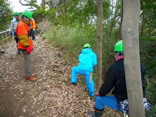 生田緑地の尾根路の両側は非常に急な斜面が多いので、このような場所での活動に慣れて、安全に行えるようになることが大切と考えています。