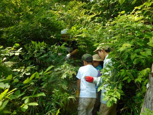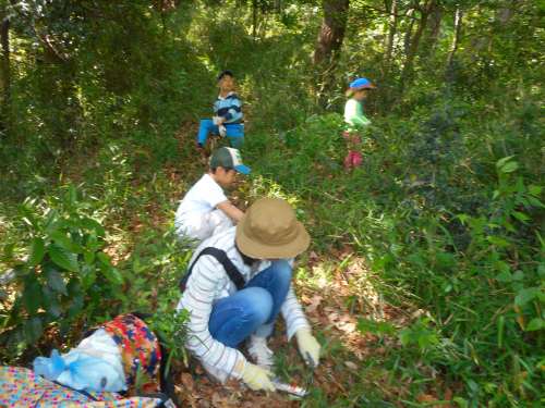 彼は、調査団の若い(10代)団員であり、里山倶楽部Bによる当該地区でのモウソウチク除伐にも参加していて、しかも、小さい子の面倒を看られる子です。