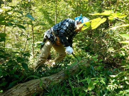活動を始めようとしたら、コナラが1本倒れていて、ゴンズイ、ヌルデなどを押し倒していることが分かりました。