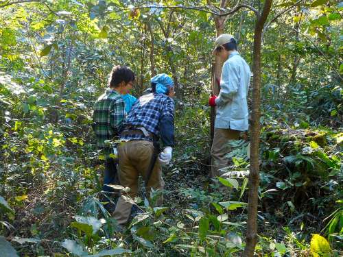 しかし、2011年には丸裸だった区域に、いち早く発芽してきたパイニアオと呼ばれる樹木は抜き取り、後から発芽してきたコナラ、ヤマザクラ、ゴンズイなどは、選択的に保護することで、
