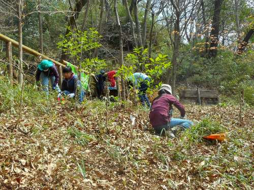 | 萌芽更新地区のアズマネザサ刈り、落葉掻き