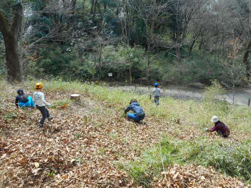 子どもたちが、遊び出すかと思っていましたが、夢中で作業をしていたので、ヒゴスミレの観察をしに行くことを忘れていました。
