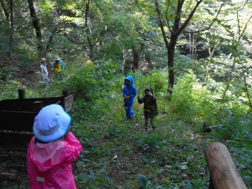 日時 平成29年(2017) 9月 2日(土) 10:00〜14:00 直前まで小雨、昼から晴 参加者 7年目 工藤真貴子(午前) 6年目 山下淳也(大1) 5年目 山下佳保里、真奈実(中1)(午後) 4年目 山下まい、ねのは(小4)(午前) 2年目 池上幸一、陽子、豪一郎(小1) 藤村望美、渓(小1)、花(幼児) 1年目 杉本貴子、孝、大知(小4)(午前) (生田緑地運営共同事業体)額谷悠夏 (かわさき自然調査団市民部会事務局) 岩田臣生、岩田芳美 18名 台風15号の影響で降雨が続き、生田緑地は活動直前まで小雨が降っていて、集まった参加者に活動中止を説明すべきか迷っていました。 ただ、折角、生田緑地にきたのであれば、傘を差しての自然観察に終わってもいいと考えました。