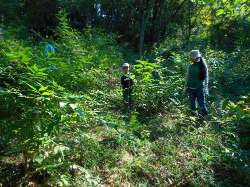 日時 平成29年(2017) 11月 4日(土) 10:00〜15:00 晴 参加者 1年目 新井康悦、新井みどり、新井康介 (かわさき自然調査団)藤間A子 (かわさき自然調査団市民部会事務局) 岩田臣生、岩田芳美 6名 9〜10月は雨続きで、様々なイベントが中止になりましたが、この日はに晴れて、気持ち良く活動できた里山倶楽部でした。 連休中日ということで、参加者は少なかったのですが、気になっていた萌芽状態の確認ができました。 萌芽更新地区上部にあったウバユリの実が熟していました。
