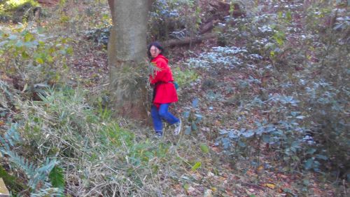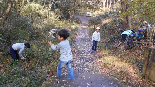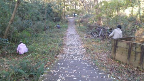 日時 平成30年(2018) 12月 1日(土) 10:00〜14:30 晴 場所 生田緑地 ピクニック広場〜萌芽更新地区下の園路沿い 参加者 8年目 工藤真貴子 5年目 山下まい、ねのは(小5) 4年目 鈴木麻美、美舟(中1)、眞之介(小4) 3年目 池上幸一、池上陽子、池上豪一郎(小2) 猿谷明衣(中1) 藤村望美、花(幼児)、照(乳児) 2年目 新井みどり、新井康介(小3) 杉本 孝、貴子、杉本大知(小5) 1年目 小野寺まなみ、柚月(小6)、花柑(小4) 和 佐代子、拓未(幼児) 佐藤奈緒、天音(小3) (事務局)岩田臣生、岩田芳美 27名 里山倶楽部Aは午前だけの参加も、午後だけの参加も可能にしていますが、今日は今年の最後の活動ということで総勢 27 名の参加となりました。 生田緑地整備事務所前に集合して、直ぐに活動場所に向かって出発しました。