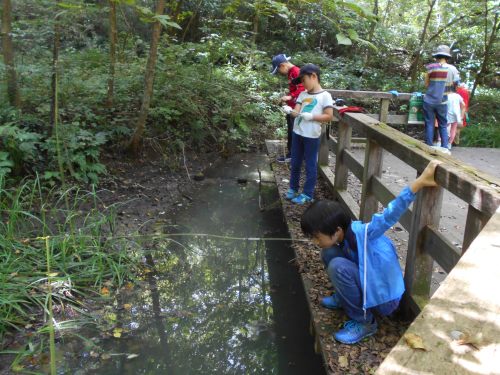 最近の子どもたちはアメリカザリガニ釣りの経験が無いようなので、お母さんたちがアズマネザサ刈りをしている間、直ぐ下の ハンノキ林上の池で、ザリガニ釣りを体験させることにしました。 釣り竿は細めのアズマネザサを現地調達しました。 タコ糸は倉庫にあるものと思っていたのですが、見つかりませんでした。 仕方なく、スズランテープで代用することにしました。 餌は、いつものスルメです。 皆、気が短くて、動きが速くて、ザリガニのペースに合わせられないようでしたが、何とか 2 頭釣れたので良かったです。 これも一応、外来種駆除の活動なので、里山倶楽部Aの活動としても問題ないでしょう。