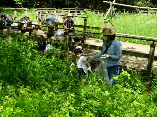 日時 2020年 5月 2日(土) 10:00〜13:00 場所 生田緑地 谷戸 C07〜B06〜B07 参加者 東 陽一、岩渕裕輝、北川英樹、長澤正弘、政野祐一、吉澤正一 和 秀俊、佐代子、朋花(中1)、拓未(小1)、中村瑞希、さち(幼児) 藤村望美、渓(小4)、花(小1) (かわさき自然調査団市民部会事務局)岩田臣生、岩田芳美 17 名 新型コロナ感染対策として緊急事態宣言が発出され、生田緑地では、ビジターセンター、日本民家園、岡本太郎美術館、桝形山展望台など、集客施設は全て休館となり、 駐車場も全て閉鎖されていますが、活動した谷戸には急増した大勢の来園者が訪れていました。 外出自粛が求められていますが、今年度第 3 回の里山倶楽部は、次のことを守って、谷戸のセリバヒエンソウ駆除を行いました。 @生田緑地への来園に公共交通機関を使用しないこと A集合したら、石鹸で手を洗うこと B活動中もマスクを着用すること Cお互いに距離をとって離れて活動すること D休憩は、一人または家族で個別にとること セリバヒエンソウは簡単に引き抜けるので、道具類は不要ですが、生田緑地整備事務所裏に集合してから、一緒に谷戸に降りました。