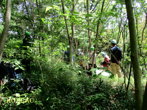 モウソウチク除伐とアズマネザサ刈りを続けていた東に伸びる尾根上にも、1〜3年程のコナラ実生が見られましたので、 この尾根も、夏期のアズマネザサ刈りを実施してやれば、樹林に育てることができそうだと思いました。